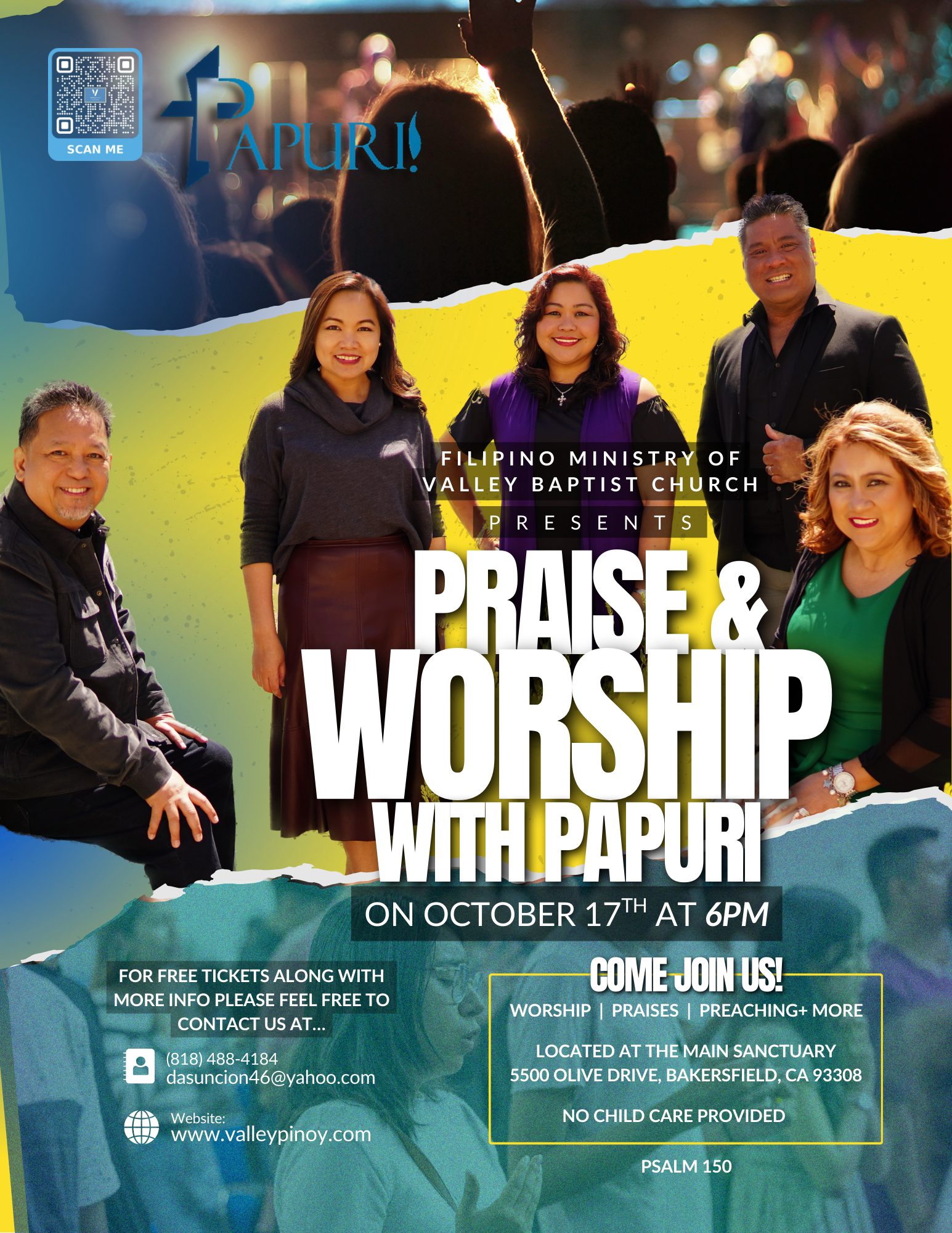 Are you longing for a church family to belong? Are you looking for a vibrant and caring Bible-believing, Filipino church? Do you have a desire to find a place where you can worship and serve the Lord in your cultural context, and yet be part of ? Your search is over, Kabayan! This is the right place for you. We are the Filipino Ministry of Valley Baptist Church in Bakersfield, CA.